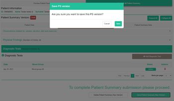 Save Patient Summary Data by clicking the Save option. After the confirmation the PS is saved to the platform.